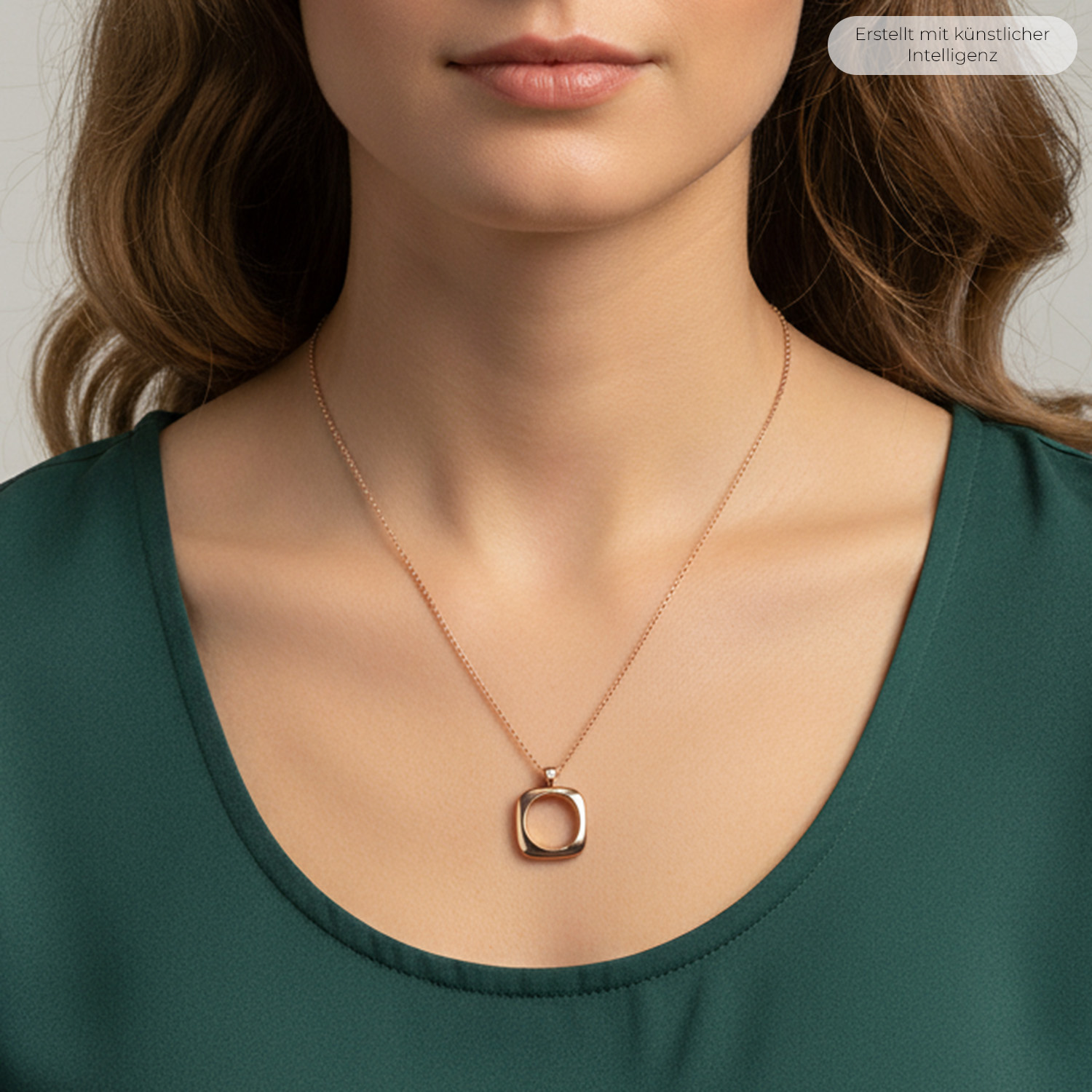 Diese Elements-Anhängerin ist aus 18-Karat Roségold gefertigt und dem 0,01 ct Signature-Diamanten besetzt. Das Schmuckstück wird als Set geliefert – bestehend aus Kette und Anhänger. Die Kette ist 45 cm lang und kann dank Verkleinerungsösen bei 42 cm und 40 cm individuell angepasst werden.
