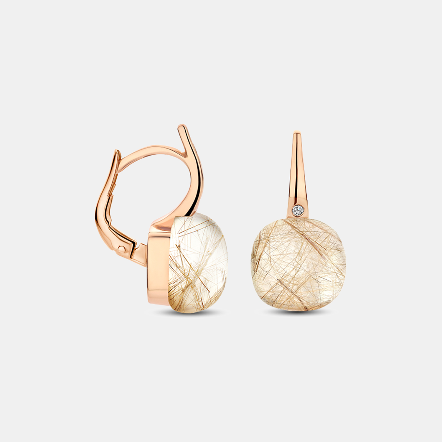 Diese Mini-Sweety-Ohrringe sind aus 18-Karat Roségold gefertigt mit Rutilquarz, Perlmutt und dem 0,01 ct Signature-Diamanten besetzt.