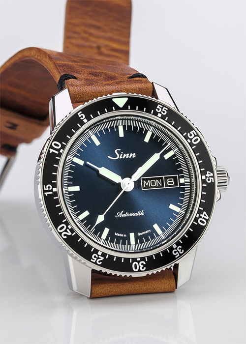 Aufgrund der Fliegerhistorie des Firmengründers Helmut Sinn sind Pilotenuhren ein fester Teil der Identität von Sinn – made in Frankfurt, Germany. Die ikonische 104 überzeugt durch einen Countdown-Drehring, welcher das präzise Nachhalten eines zeitlichen Events erlaubt. Über der Tag/Datum-Anzeige prangt das Logo der Sinn Spezialuhren. Mit einer für einen Chronographen überragenden Wasserdichtigkeit besticht die Uhr durch ihre robuste Bauweise mit der typischen Gehäusedimension und -form.