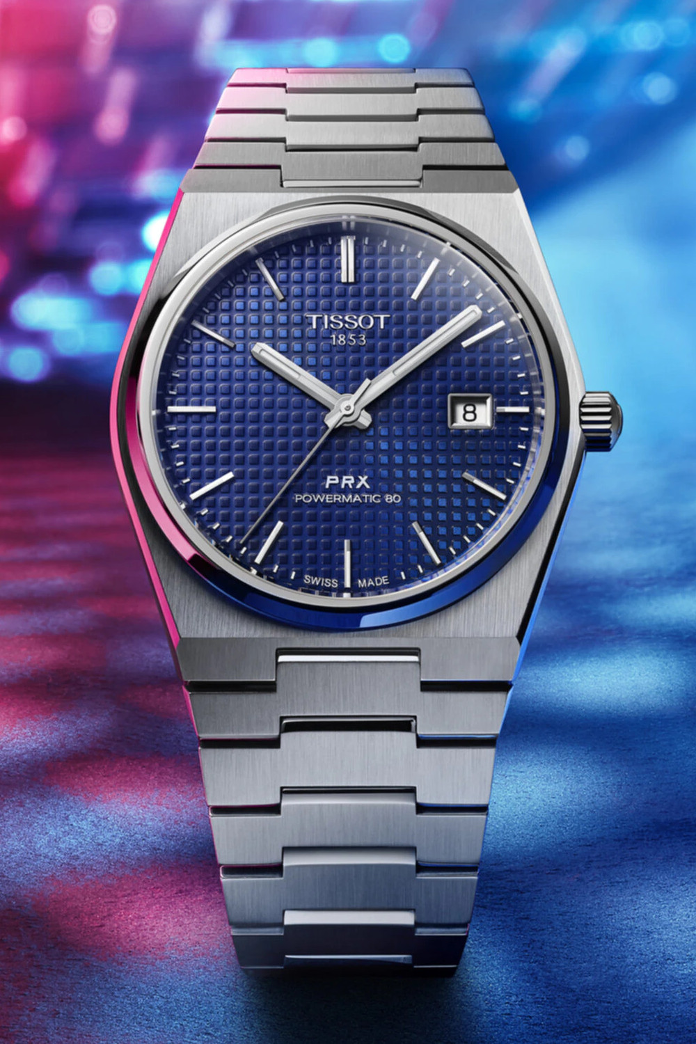 Die Tissot PRX Powermatic 80 (Ref. T137.207.33.021.00) überzeugt mit elegantem Retro-Design, 35-mm-Gehäuse aus goldbeschichtetem Edelstahl und champagnerfarbenem Waffel-Zifferblatt. Das Powermatic-80-Automatikwerk bietet eine beeindruckende 80-Stunden-Gangreserve. Mit Schnellwechselsystem und Butterfly-Faltschließe ist das Armband ebenso praktisch wie stilvoll. Die perfekte Kombination aus Präzision, Robustheit und klassischer Ästhetik.Die Geschichte der Tissot PRX Powermatic 80Bereits im Jahr 1978 präsentierte Tissot ein Modell mit einem Gehäuse in Tonneau-Form. Wenige Jahre später ließ die Marke den Namen „PRX“ eintragen. Das „PR“ steht hierbei für präzise und robust, während das „X“ die römische Zahl Zehn symbolisiert. Dies bezieht sich auf die Wasserdichtigkeit der Uhr, die einem Druck von bis zu 10 bar standhält. Mehr als 40 Jahre später wurde die PRX als moderne Neuinterpretation in Form der Tissot PRX Powermatic 80 neu aufgelegt.Das Gehäuse der Tissot PRX Powermatic 80Das 316L-Edelstahlgehäuse hat einen Durchmesser von 35 mm, eine flache Bauhöhe von 10,9 mm und wurde mit einer gelbgoldfarbenen PVD-Beschichtung versehen. Die Seiten der Uhr sind mit abgerundeten, vertikal gebürsteten Finishes gestaltet. Das champagnerfarbene Zifferblatt wurde mit einem eindrucksvollen Waffelmuster designt. Die Indizes sind vernickelt, und die Zeiger wurden neben der Vernickelung mit einer Super-LumiNova-Beschichtung versehen. Diese Kombination verleiht der Uhr einen eleganten Look und lässt das Gehäuse noch flacher wirken, als es tatsächlich ist.Das UhrwerkIm Herzen der goldenen Tissot PRX Powermatic 80 (Ref. T137.207.33.021.00) schlägt das Powermatic-80-Kaliber mit einer Frequenz von 3 Hz beziehungsweise 21.600 Halbschwingungen pro Stunde. Dieses Automatikwerk bietet eine beeindruckende Gangreserve von 80 Stunden bei Vollaufzug. Neben der zentralen Sekunden-, Minuten- und Stundenanzeige verfügt die Uhr über eine Datumsanzeige, die sich auf der 3-Uhr-Position befindet.Das Armband der goldenen Tissot PRX Powermatic 80Die Tissot PRX Powermatic 80 ist mit einem edlen, PVD-beschichteten 316L-Edelstahlarmband ausgestattet, das über ein Schnellwechselsystem verfügt. Dadurch kann der Träger das Armband mühelos und ohne zusätzliches Werkzeug wechseln. Es ist allerdings zu beachten, dass die Breite des Bandes 12 mm beträgt. Somit sollte ein alternatives Band sorgfältig ausgewählt werden. Für sicheren Halt sorgt eine Butterfly-Faltschließe mit seitlichen Drückern.ALTHERR´s Fazit zur goldenen Tissot PRX Powermatic 80 35mmDie goldene Tissot PRX Powermatic 80 in 35mm (Ref. T137.207.33.021.00) ist mehr als nur eine Hommage an vergangene Zeiten. Sie verkörpert das perfekte Zusammenspiel von Tradition und Innovation. Mit ihrem beeindruckenden Gerald-Genta-Design und dem Powermatic-80-Kaliber lässt sie die Herzen vieler Uhrenenthusiasten höherschlagen.Die PRX bietet einen außergewöhnlichen Gegenwert und richtet sich an Uhrenliebhaber, die sowohl Ästhetik als auch Leistung schätzen. Sie ist nicht nur ein stilvolles Accessoire. Sie ist auch ein zuverlässiger Begleiter, der durch Vielseitigkeit und breite Auswahl an Zifferblättern nahezu jedem Stil gerecht wird. Für Uhrenfreunde ist die Tissot PRX ein klarer Gewinner in ihrer Preisklasse und eine hervorragende Ergänzung für jede Uhrensammlung.