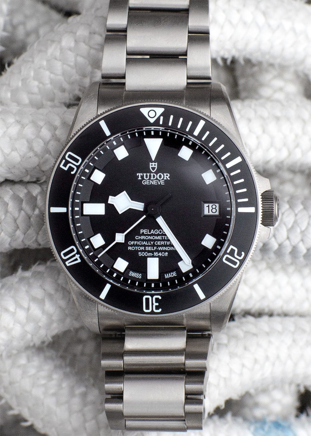 Die TUDOR Pelagos FXD (Ref. M25717N-0001) ist eine professionelle Taucheruhr mit einem robusten 42-mm-Titangehäuse, festen Bandanstößen und einer Wasserdichtigkeit bis 200 Meter. Sie verfügt über das leistungsstarke Automatikkaliber MT5602 mit COSC-Zertifizierung und 70 Stunden Gangreserve. Die Uhr kombiniert Funktionalität mit nautischem Erbe und wird mit einem widerstandsfähigen Textilband sowie einem zusätzlichen Kautschukband geliefert. Ihre Ausstattung, darunter ein schwarzes Zifferblatt und eine drehbare Lünette, macht sie zu einem idealen Begleiter für anspruchsvolle Unterwassereinsätze.Die Geschichte der TUDOR Pelagos FXDDie TUDOR Pelagos FXD ehrt die jahrzehntelange Verbindung der Marke mit der Welt der professionellen Taucheruhren. Seit den 1950er Jahren entwickelt TUDOR Zeitmesser, die den extremen Anforderungen unter Wasser standhalten. Besonders hervorzuheben ist die Zusammenarbeit mit militärischen Eliteeinheiten wie den französischen Marinekampfschwimmern (Marine Nationale). Diese nutzten TUDORs Expertise und Innovationsgeist. Die Pelagos FXD trägt dieses Erbe weiter: TUDOR entwickelte ihr Design und ihre Funktionalität speziell für Unterwasser-Einsätze. Sie ist ein Symbol für die unermüdliche Hingabe der Marke, robuste und zuverlässige Taucheruhren zu schaffen.Das Gehäuse der TUDOR Pelagos FXDDas Gehäuse der TUDOR Pelagos FXD (Ref. M25717N-0001) ist ein Meisterwerk der Technik und wurde aus leichtem, widerstandsfähigem Titan gefertigt. Der Gehäusedurchmesser des Zeitmessers beträgt 42 mm, die Bauhöhe 12,75 mm und der Lug-to-Lug Abstand 52 mm. Eine Besonderheit des FXD-Modells sind die festen Bandanstöße (Fixed Lugs). Diese gewährleisten eine maximale Stabilität des Armbands und halten die Uhr selbst bei extremen Einsätzen sicher am Handgelenk. Mit einer Wasserdichtigkeit von 200 Metern und einer einseitig drehbaren Lünette erfüllt das Gehäuse die höchsten Ansprüche an eine Taucheruhr. Das schwarze Zifferblatt und die gleichfarbige Lünette begeistern mit einem schlichten Design was zur besseren Ablesbarkeit beiträgt.Das UhrwerkIm Inneren der TUDOR Pelagos FXD schlägt das Automatikkaliber MT5602 mit einer Frequenz von 4 Hz beziehungsweise 28.800 Halbschwingungen pro Stunde. Dieses COSC-zertifizierte Uhrwerk bietet bei Vollaufzug eine Gangreserve von 70 Stunden. Dadurch hat der Träger die Möglichkeit, die Uhr über das Wochenende abzulegen, ohne sie am Montagmorgen erneut aufzuziehen.Das Armband der TUDOR Pelagos FXDDie TUDOR Pelagos FXD (Ref. M25717N-0001) kommt mit einem innovativen Armbandsystem, das auf Langlebigkeit und Tragekomfort ausgelegt ist. Sie wird standardmäßig mit einem einteiligen grünen Textilband mit einem roten Streifen geliefert. Die charakteristische Schiebeschließe aus Titan ermöglicht eine schnelle Anpassung, auch über Neoprenanzügen. Zusätzlich liegt ein Kautschukband mit Stiftschließe bei, das dem Träger eine atemberaubende Kombination aus Robustheit und Tragekomfort bietet.ALTHERR´s Fazit zur TUDOR Pelagos FXDDie TUDOR Pelagos FXD (Ref. M25717N-0001) ist weit mehr als nur ein Zeitmesser: Sie ist ein Werkzeug für Profis, ein Symbol für nautische Exzellenz und ein Tribut an die Historie der Marke. Ihr Titan-Gehäuse, das leistungsstarke MT5602-Uhrwerk und das innovative Armbandsystem machen sie zu einer der funktionalsten und ästhetisch ansprechendsten Taucheruhren auf dem Markt. Mit der Pelagos FXD setzt TUDOR einen neuen Standard für moderne Einsatzzeitmesser – robust, präzise und kompromisslos zuverlässig.