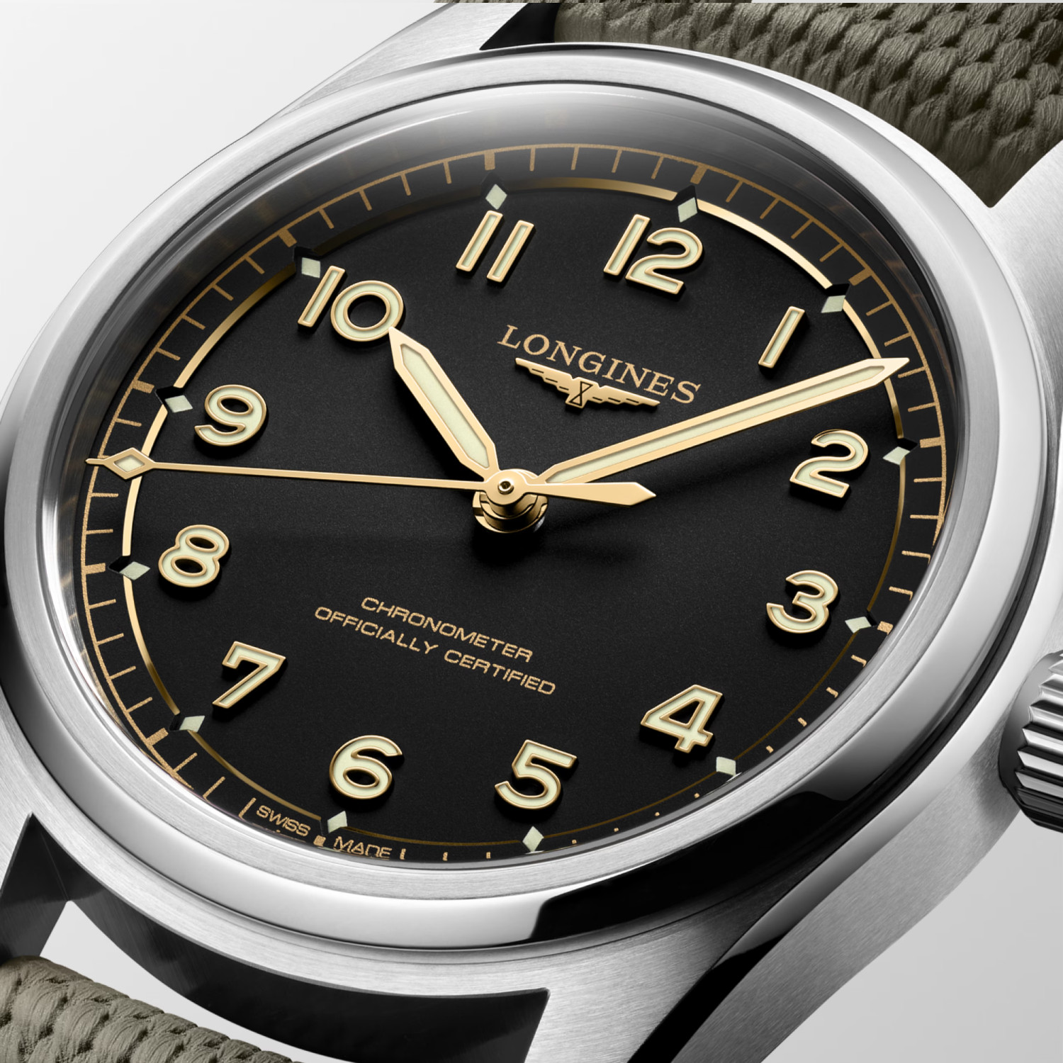 <h3 style="font-size:16px;font-weight:700">Geschichte der LONGINES SPIRIT PILOT (L3.809.4.53.6)</h3>Die LONGINES SPIRIT PILOT hat ihre Wurzeln in der langen Historie von Longines als Pionier der Fliegeruhren, die legendäre Präzision und Zuverlässigkeit mit charakteristischem Design verbinden. Dieses Modell ehrt die wagemutigen Piloten vergangener Zeiten, die auf technische Innovationen und robuste Uhren angewiesen waren. Die SPIRIT PILOT (Referenz L3.809.4.53.6) setzt diese Tradition mit moderner Automatiktechnik fort und ist dennoch ein stilvolles Statement für alle, die klassische Fliegeruhren schätzen. Besonders das mattschwarze Zifferblatt verleiht der Uhr eine zeitlose Eleganz und sorgt für hervorragende Ablesbarkeit, ein typisches Merkmal von Longines Signaturmodellen.<br><br><h3 style="font-size:16px;font-weight:700">Gehäuse der LONGINES SPIRIT PILOT (L3.809.4.53.6)</h3>Das Gehäuse dieser SPIRIT PILOT besticht durch seine klassische, runde Form mit einem Durchmesser von 39 mm, ideal für ein komfortables Tragegefühl und vielseitig für den Alltag geeignet. Gefertigt aus hochwertigem Edelstahl, bietet es Robustheit und edle Ästhetik zugleich. Das beidseitig entspiegelt kratzfeste Saphirglas schützt das matt schwarze Zifferblatt optimal vor sichtbaren Gebrauchsspuren und Reflexionen. Mit einer Höhe von 11,5 mm und einem Bandanstoss von 20 mm harmoniert das Gehäuse perfekt mit dem Edelstahlarmband der Uhr. Die verschraubte Krone und der verschraubte Boden gewährleisten eine Wasserdichtigkeit bis zu 10 bar, sodass die SPIRIT PILOT auch beim Schwimmen oder bei Regen zuverlässig geschützt ist. Mit einem Gewicht von 143 Gramm sorgt die Uhr für einen soliden, wertigen Eindruck am Handgelenk.<br><br><h3 style="font-size:16px;font-weight:700">Uhrwerk der LONGINES SPIRIT PILOT (L3.809.4.53.6)</h3>Im Inneren der LONGINES SPIRIT PILOT (L3.809.4.53.6) arbeitet das mechanische Automatikwerk Kaliber L888.4, das eine Frequenz von 25.200 Halbschwingungen pro Stunde aufweist. Mit einer beeindruckenden Gangreserve von ca. 72 Stunden meistert das Uhrwerk auch längere Tragepausen ohne Nachstellen. Die Unruhfeder aus monokristallinem Silizium erhöht die Präzision und Widerstandskraft gegen Magnetfelder, was durch die antimagnetische Eigenschaft der Uhr zusätzlich unterstrichen wird. Offiziell als Chronometer zertifiziert, garantiert das Werk maximale Ganggenauigkeit und Zuverlässigkeit im Alltag – eine technische Referenzklasse für hochwertige mechanische Uhren.<br><br><h3 style="font-size:16px;font-weight:700">Armband der LONGINES SPIRIT PILOT (L3.809.4.53.6)</h3>Das Edelstahlarmband der SPIRIT PILOT harmoniert hervorragend mit dem robusten Gehäuse und unterstreicht den eleganten und modernen Pilot-Look der Uhr. Das Armband verfügt über eine doppelt gesicherte Faltschließe mit Mikro-Verstellsystem, die für einen sicheren Halt am Handgelenk sorgt und zudem ein komfortables, individuell anpassbares Tragegefühl ermöglicht. Die Verarbeitung ist hochwertig, strapazierfähig und passt sich angenehm der Kontur des Handgelenks an. Für einen noch vielseitigeren Auftritt ist die LONGINES SPIRIT PILOT außerdem in Varianten mit braunem Leder- oder grünem Kautschukarmband erhältlich, wobei das mattschwarze Zifferblatt stets den markanten Kontrast und die optimale Ablesbarkeit gewährleistet.<br><br><h3 style="font-size:16px;font-weight:700">ALTHERR´s Fazit zur mattschwarzen LONGINES SPIRIT PILOT Edelstahluhr (L3.809.4.53.6)</h3>Die LONGINES SPIRIT PILOT (L3.809.4.53.6) mit mattschwarzem Zifferblatt ist eine meisterhaft gefertigte Fliegeruhr, die Tradition und Technik gekonnt vereint. Sie überzeugt mit ihrem zeitlosen Design, der ausgezeichneten Lesbarkeit dank Swiss Super-LumiNova® und der hochwertigen Verarbeitung von Gehäuse und Armband. Das präzise, chronometerzertifizierte Automatikwerk mit antimagnetischer Unruhfeder aus Silizium, die solide Wasserdichtigkeit bis 10 bar sowie der komfortable Sitzt machen diese Uhr zum idealen Begleiter für aktive Abenteuer genauso wie für den stilvollen Alltag. Besonders Liebhaber klassischer Pilotenuhren, die Wert auf technische Exzellenz und elegante Schlichtheit legen, finden hier ein zuverlässiges und charakterstarkes Modell. Die mattschwarze Zifferblattfarbe verleiht der LONGINES SPIRIT PILOT eine zeitlose Eleganz, die sich universal kombinieren lässt. Für alle, die eine hochwertige, vielseitige und langlebige Automatikuhr suchen, ist diese SPIRIT PILOT eine sehr empfehlenswerte Wahl.