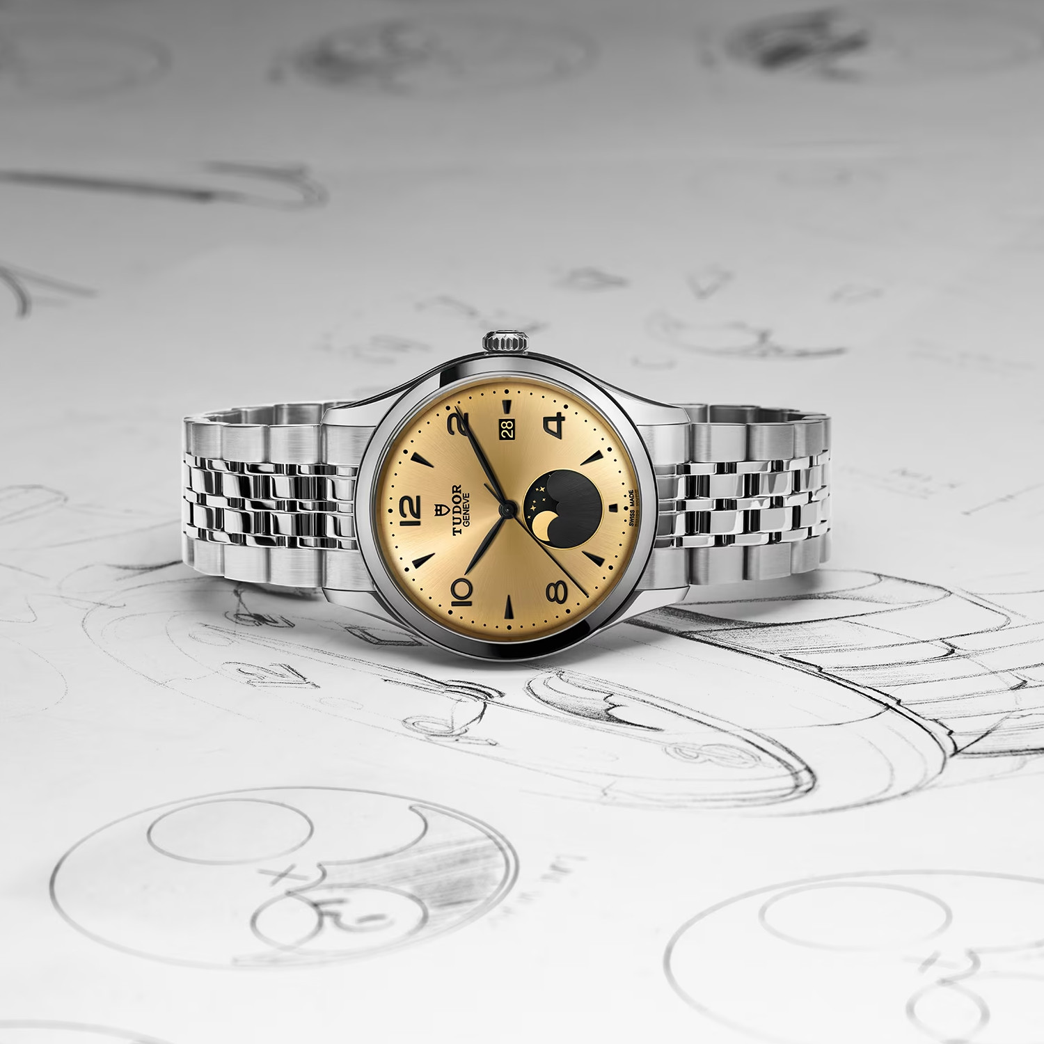 Die TUDOR 1926 Luna mit champagnerfarbenem Zifferblatt ist eine exquisite Wahl für Uhrenliebhaber, die eine klassische Uhr mit feinen Details und einer eleganten Mondphasenanzeige suchen. Das polierte Edelstahlgehäuse, das zuverlässige mechanische Uhrwerk und das sorgfältig verarbeitete Edelstahlarmband machen sie zu einem vielseitigen Begleiter, der Alltagstauglichkeit und Stil harmonisch vereint. Besonders das champagnerfarbene Sonnenschliff-Zifferblatt verleiht der Uhr Lebendigkeit und wirkt am Handgelenk einladend warm und edel. Dank 100 Metern Wasserdichtigkeit und einer robusten Fertigung ist die 1926 Luna nicht nur schön, sondern auch funktional. Diese Uhr eignet sich hervorragend für Menschen, die feine Uhrmacherkunst mit einem Hauch von Tradition und Poesie wertschätzen – sei es im Büro, bei feierlichen Anlässen oder im formellen Alltag. Eine hochqualitative Uhr mit einem außergewöhnlichen Charakter, die eine persönliche und stilvolle Wahl für Liebhaber mechanischer Zeitmesser darstellt.